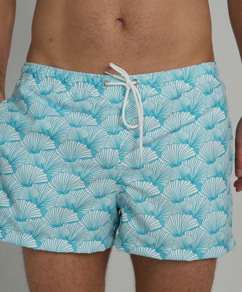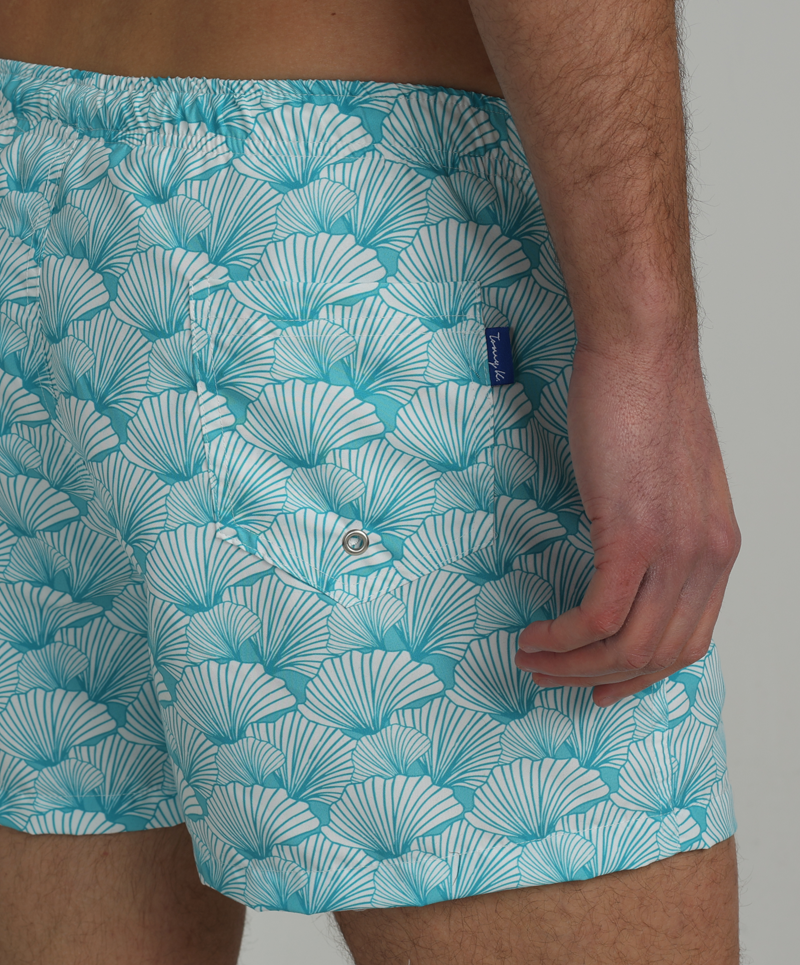Mid-length swim shorts with an elastic waistband and adjustable drawstrings, side pockets and one back pocket. Hypoalergic lining made from 90% Polyamide and 10% elastane, Made from durable, quick-drying polyester fabric. Machine wash 30 degrees.